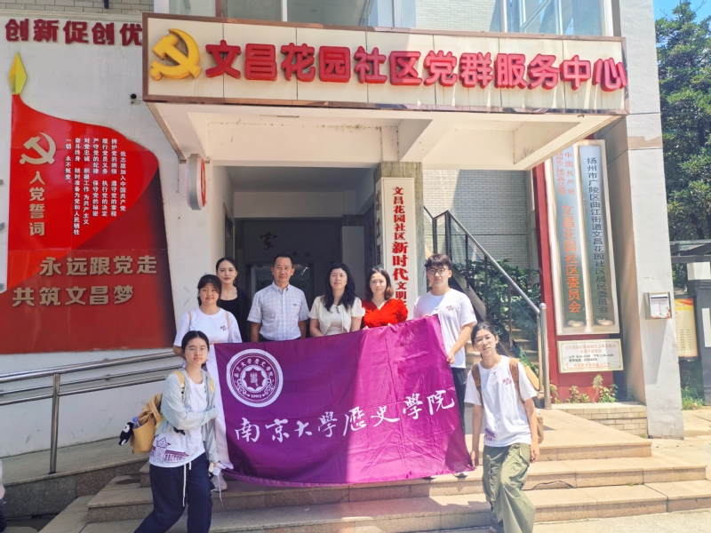7月9日,团队走进江苏省“红石榴家园”南京市秦淮区朝天宫街道七家湾社区参观走访。“从明清时起,七家湾就是多民族聚居地,各民族长期交往交流交融,在这里留下了许多历史印记。”七家湾社区书记赵欣介绍。