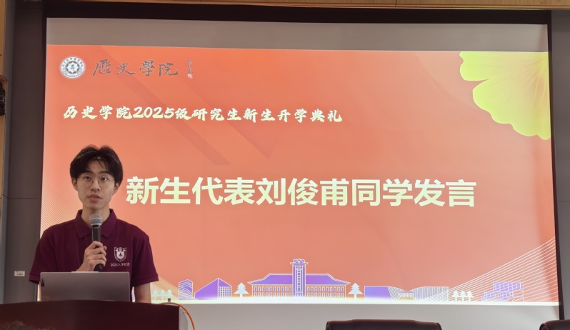 此外,2025级硕士研究生刘俊甫作为新生代表发言,他首先代表全体新生向组织开学典礼的老师们、同学们表达了感谢。谈到前辈学者的抉择,刘俊甫表示,我们成人电影 学子要将个人抉择与历史相结合,利用自己的历史素养把握时代脉络、理解中国道路。他认识到,作为研究生需要从知识接受者向研究者转变,在历史长河中寻找值得探索的问题。适逢教师节临近,刘俊甫还代表新生向老师们送上节日祝福。