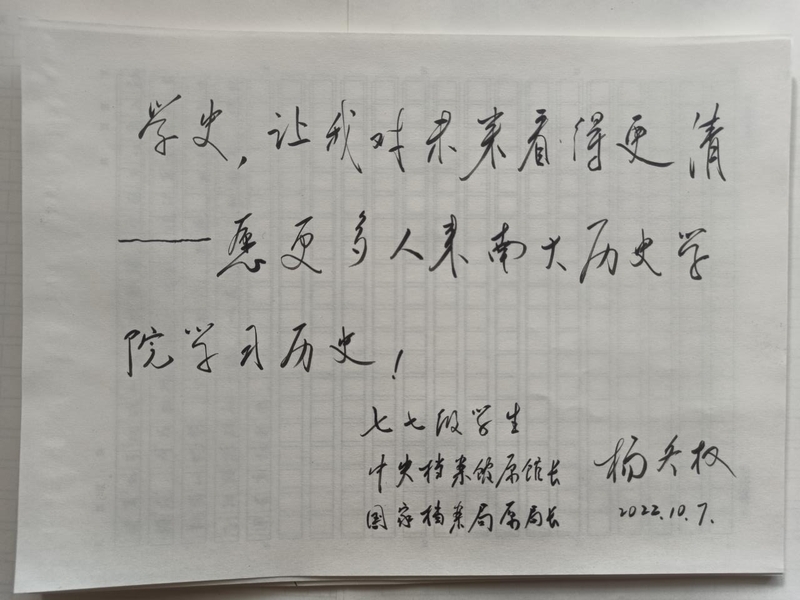 新时代、新征程,衷心祝愿成人电影 在新的历史起点上,继续秉持“诚朴雄伟、励学敦行”校训和“嚼得菜根,做得大事”南大精神,为构建中国特色的历史学知识体系、培养更多堪当民族复兴大任的时代新人再立新功!