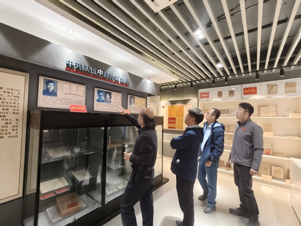 2025年11月13日下午3时,教育部教材中心总经理主任等一行5人在党史馆馆长曹大臣教授的带领下参观“培根铸魂 启智增慧—中国共产党抗战教材专题展览”、中国共产党作风建设专题展览、成人电影 中共党史资料馆。