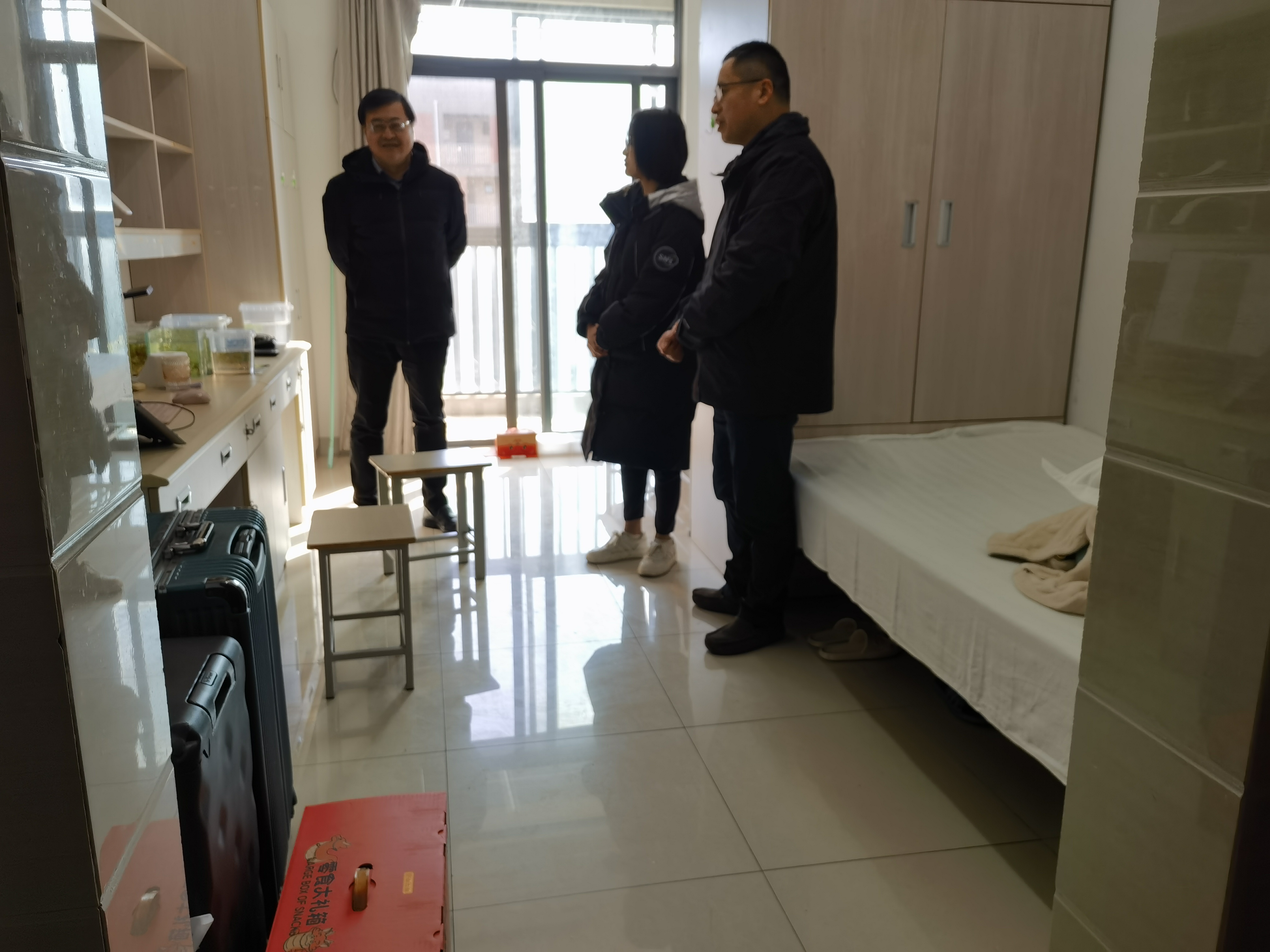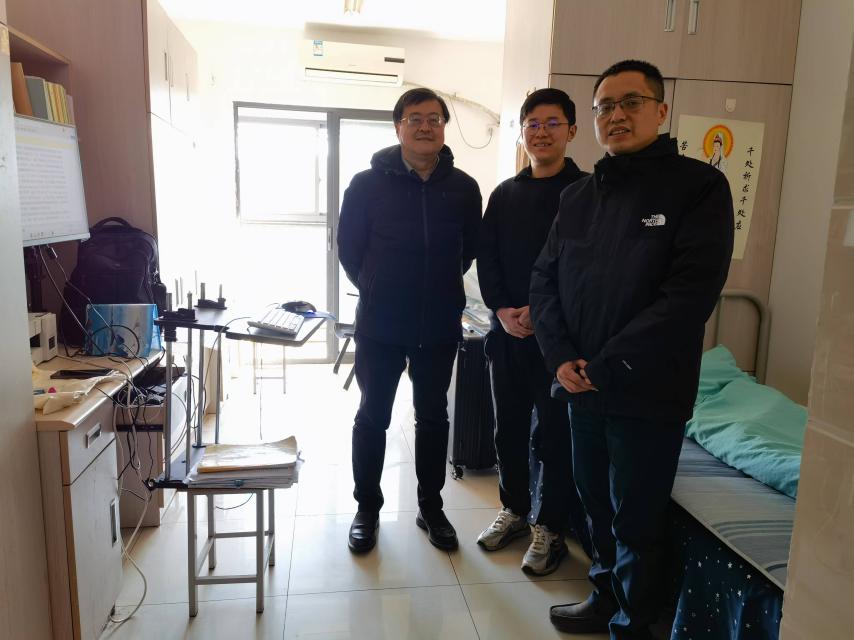 党委书记赵清、院长梁晨、党委副书记任玲玲,前往学生宿舍探望留校过春节的同学。