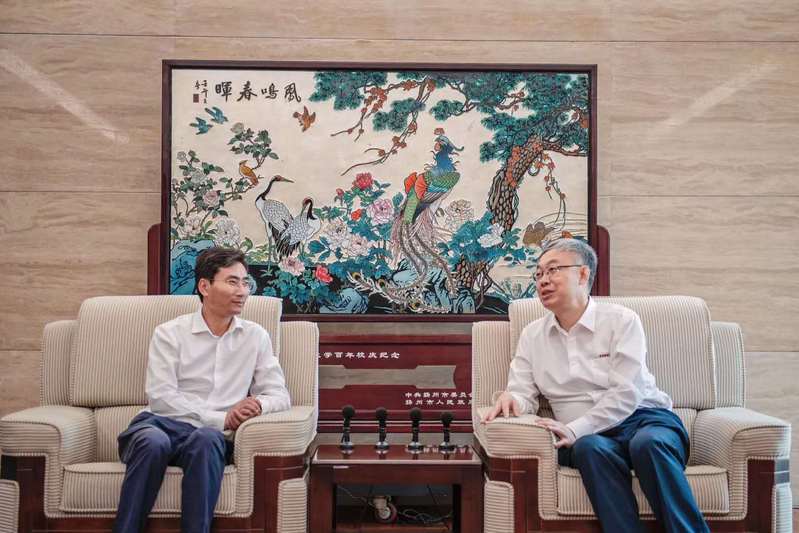 2020年6月16日捐赠仪式前鲍风林先生与吕建校长座谈
