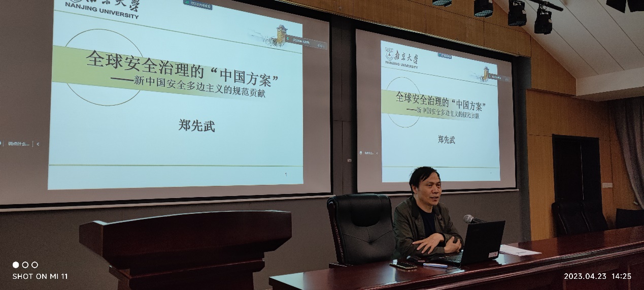 之后,校党委理论讲师团成员、成人电影 郑先武教授为全体师生党员带来主题为“全球安全治理‘中国方案’”的党课。郑先武老师从时代性、历史性、创造性三个角度着眼,分析了全球权力大转移的周期、目前新的动荡变革期、地缘政治回归和区域问题突显和中美全面竞争日益加剧的时代属性;接着郑老师从历史性角度分析了新中国安全多边主义的演进历程,从传统型和平外交到务实型发展外交再演进到引领型总体外交,介绍了“一带一路”倡议、丝路基金的设立、澜湄国家共同体建设以及促进沙特与伊朗和解等行动引领方面的重大成就;最后,郑老师从人类命运共同体开始,从“新型国际关系”、总体国家安全观、“亚洲安全观”发展到习近平总书记2020年在博鳌亚洲论坛上首次提出“全球安全倡议”,创造性地提出了应对世界之变、时代之变和历史之变的最新“中国方案”,为推进全球安全治理、应对国际安全挑战贡献了“中国智慧”,更为维护世界和平安宁指明了“前进方向”。这次党课,从国际关系领域全面分析了全球安全治理“中国方案”的提出、具体内容和重大意义,在把握历史规律和掌握发展航向的基础上,教育引导全院师生党员厚植爱党爱国情怀,进一步坚定“四个自信”,是运用历史思维,把握内在规律,将理论与实践、历史与现实融会贯通的生动一课。