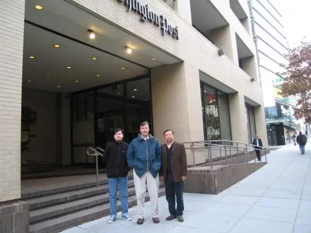 2007年冬天,我與太太到美國,先在西岸的斯坦福大學胡佛研究所查閱宋子文檔案和剛開放的蔣介石日記,聖誕前夕再飛到東岸華盛頓附近的表妹家,正好兒子剛由紐約大學提前畢業,就陪我們一起遊玩。聖誕節那天上午我們正在華盛頓四處遊覽,我突然想起,小潘前些時候說他已從洛杉磯調回華盛頓總部,還給我留下電話,不妨試試給他打個電話。電話撥通後,他聽到我的聲音非常驚奇,問我在哪兒,我說就在華盛頓的第幾大街。他說就離他的總部只有幾條街,他正在開會,叫我們一小時後去找他。那天是聖誕夜,中午很多飯店都關門了,好不容易才找到一家快餐店,幾個人匆匆吃了點漢堡包,聊了聊近況,飯後還到他們《華盛頓郵報》的大門前照了幾張像留念。後來我與他失去聯繫,聽說他已離開《華盛頓郵報》,現在也算得上是美國著名的中國問題研究專家了。