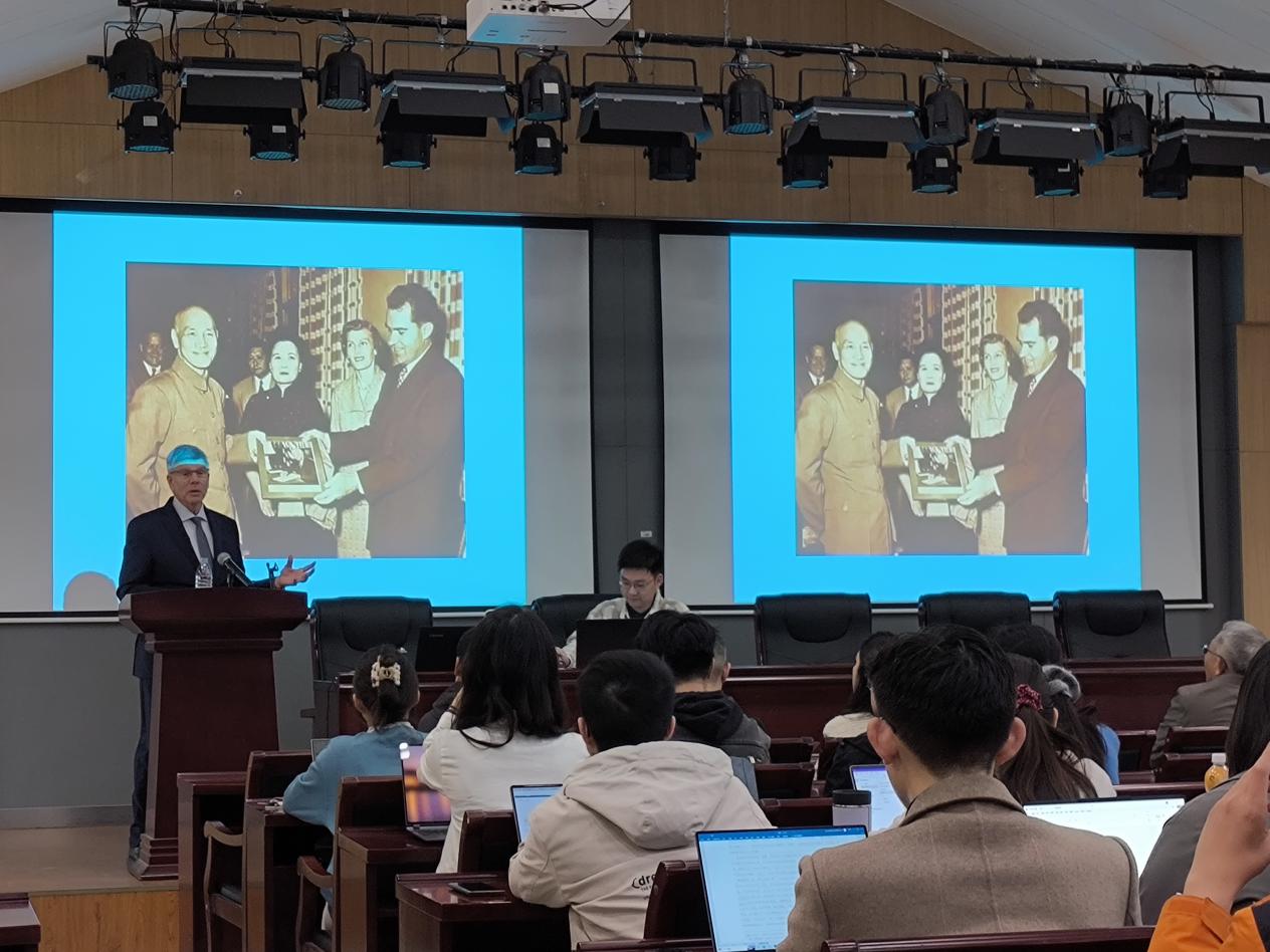 在提问环节,柯伟林教授犀利点评特朗普对中美关系的影响,称其政策“可预测性低,成效仅得D-”;针对台湾地区对其著作的翻译争议,他明确支持简体中文版保留南大元素;就“南大如何提升国际影响力”这一议题,他提出培养留学生作为“大使”并加强在社会科学领域的建设;对于中美之间谣言与信息战,他强调学者与学生应承担“真相守护者”的角色,通过独立思考与专业鉴别化解误会,柯伟林教授也呼吁中美文化研究中心的外国学生们向祖国宣传与展示中国的实际情况;对于在场一些同学们有关出国深造的疑虑,柯伟林教授建议先去投入行动,这才是第一位的。问答环节在热烈的学术氛围中圆满结束。