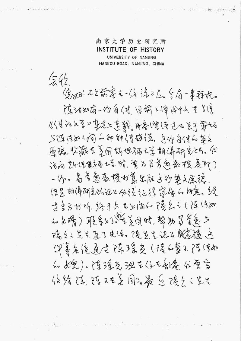 两位老师嘱托的事作为学生自然是义不容辞,我随即就按照陆久之先生提供的地址,于7月23日给陈瑶光女士写了一封信。信中首先自我介绍一番,并说自台湾《传记文学》刊载您母亲的回忆录之后,引起学界极大的重视,而这份回忆录的英文原稿现存于美国斯坦福大学胡佛研究所,美国伊利诺伊大学的易劳逸教授为了让世界上更多的人了解这段历史,计划将其英文原稿在美国出版,但这需要得到家属的同意。他说曾多次去信给您,但一直没有回音,现通过我的老师张宪文教授委托我尽快与您联系。我将我的联络地址和电话都写在信上。我在信中还介绍,易劳逸教授是美国第一流的民国史学者,为人正直,学问渊博,不仅在美国,就是在中国大陆和台湾都享有盛誉,成人电影 历史系主任张宪文教授是易教授的好友,也是国内著名的民国史专家。同时易劳逸教授还再三强调,该书出版后的所有稿酬将全数交给家属,他不会收取任何报酬。