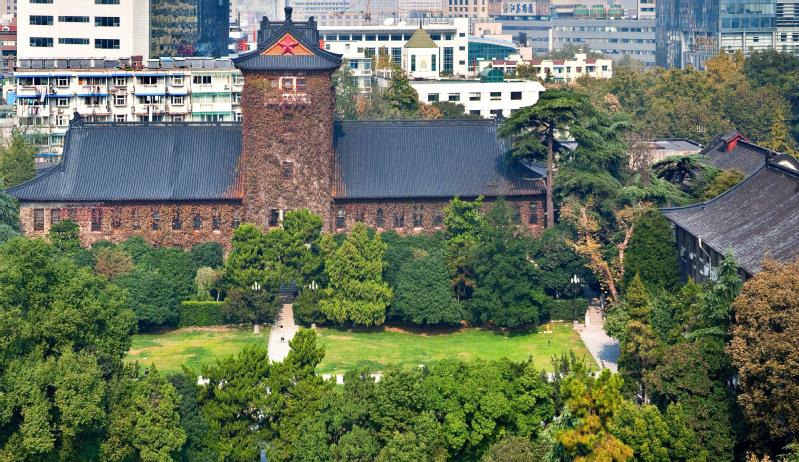 雪松所在处的“北大楼”这个名字只是大家一个亲切的称呼,因为它在校园中轴线的最北端,它还有其他名字,如行政楼,因为北大楼建成后曾用作金陵大学的行政院楼及文学院院楼;又如赛弗伦斯楼,因为由赛弗伦斯先生及其子共同捐赠。这座楼始建于1917年,是由美国帕金斯联合建筑师事务所设计,陈明记营造厂承建,1919年落成,建筑面积约3545平方米,西南角位置保留有建成年代的勒石。