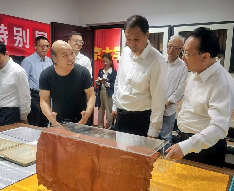 领导们在参观过程中,交流了史料背后的党史故事,高度评价了党史馆在保护党史资料、弘扬烈士精神、赓续红色血脉等方面的重大作用,并盛赞史料之丰富,难得一见。