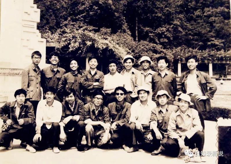 前排中间这位,1978年高考考了409分,这在文科中是个不错的成绩。他报的第一志愿是中国人民大学。然而这么好的成绩,却左等右等等不来录取通知。原来人大很满意他的成绩,却不满意他的政审(家庭有海外关系)。于是犹犹豫豫中一直扣住他的档案,未转第二、第三志愿的录取学校,直至全部录取工作结束,最终决定不录取他,才放出档案,此时为时已晚,竟让他成了落榜生!后来南大扩招专科生,他才有幸挤上末班车。那年他29岁,再拖一年,他就没资格考大学了。(照片摄于南京雨花台)