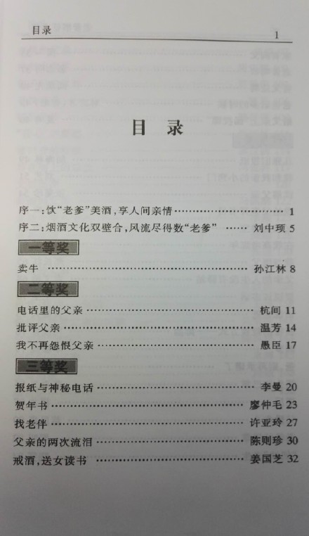 由本刊和湖南吉首老爹酒业有限公司共同举办的老爹酒一一我与父亲有奖征文近日结束,经过专家认真细致的评选, 14名获奖者已经在万余名来稿者中产生(获奖名单见本版)。由南京作者孙江林撰写的〈卖牛〉获一等奖。14名征文获奖者将得到主办单位发放的获奖证书和奖金。所有本刊刊载的作品均获优秀奖。所有奖品(精品者老爹酒一套)将于明年春节前寄()到。这些作品和部分未刊载的作品将结集出版,寄给作者。