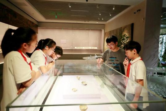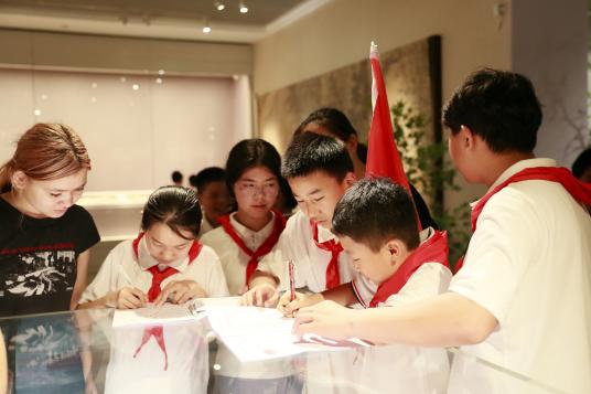 大学生与南京市朝天宫民族小学五年级小学生携手走进南京市博物馆,以“杯中江南,探寻三城三味中的中华文化”为主题,开启了一场别开生面的 “移动的博物馆课堂”。本次活动积极推进大中小学校思政教育一体化建设,将铸牢中华民族共同体意识深度融入大中小思政教育一体化实践之中。