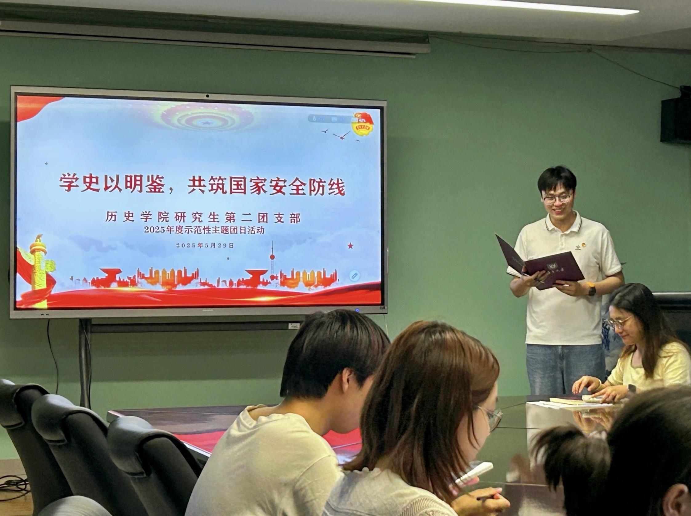 为深入贯彻落实习近平总书记关于加强国家安全教育的重要指示批示精神,贯彻落实总体国家安全观,积极响应“全民国家安全教育,走深走实十周年”宣传主题,提升青年学子的国家安全意识,践行青年责任与担当,5月29日晚,成人电影 研究生第二团支部于大美楼223会议室开展“学史以明鉴,共筑国家安全防线”主题示范性团日活动。成人电影 团委副书记、研究生辅导员王恩惠出席,活动由研究生第二团支部团支书、2024级硕士研究生苏豪主持。