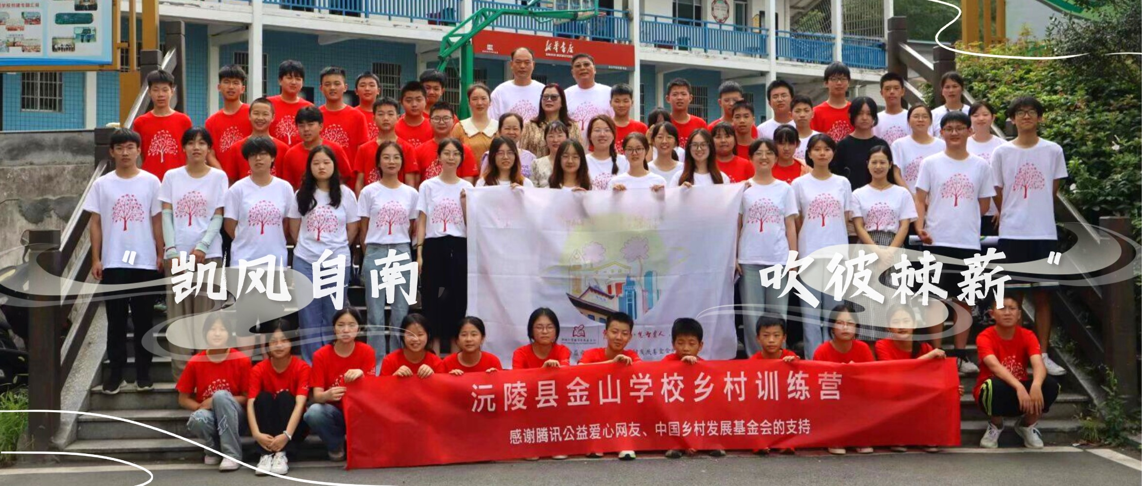 为在教育兴国的时代问卷中写下南大学子的回答,用扎根乡村、服务教育的实际行动助力南大奋进行动、国家奋进新征程,2023年7月15日,成人电影 青年志愿者协会与湖南弘慧教育发展基金会合办的沅陵县金山学校乡村训练营正式开营。沅陵县教育局领导、金山学校校领导、弘慧基金会代表,训练营全体志愿者与营员参加开营仪式。
