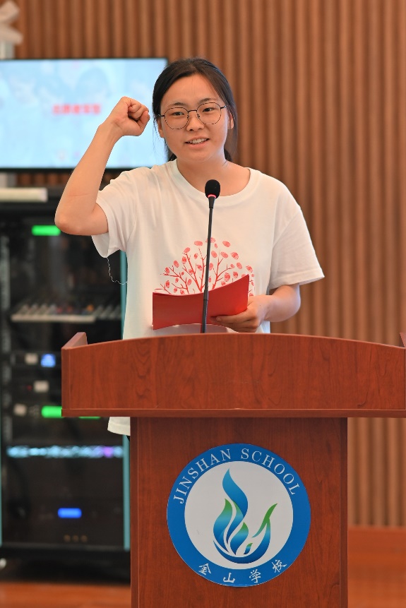 南大志愿者代表杨惠棋代表全体志愿者进行宣誓,金山学校营员兼弘慧学子代表发言。