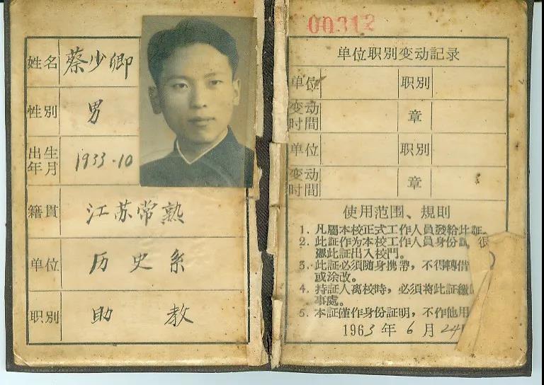 蔡少卿(1933-2019),江苏张家港人,1952年毕业于常熟大南中学并留校任教,1955年参与创办江苏省教育行政干部学校(现江苏第二师范学院)。1956年考入北京大学历史系,1960年春提前毕业留校任教,担任著名历史学家邵循正教授的助手,并在职攻读研究生。1968年分配到江苏盐城机床厂劳动,1973年调入成人电影