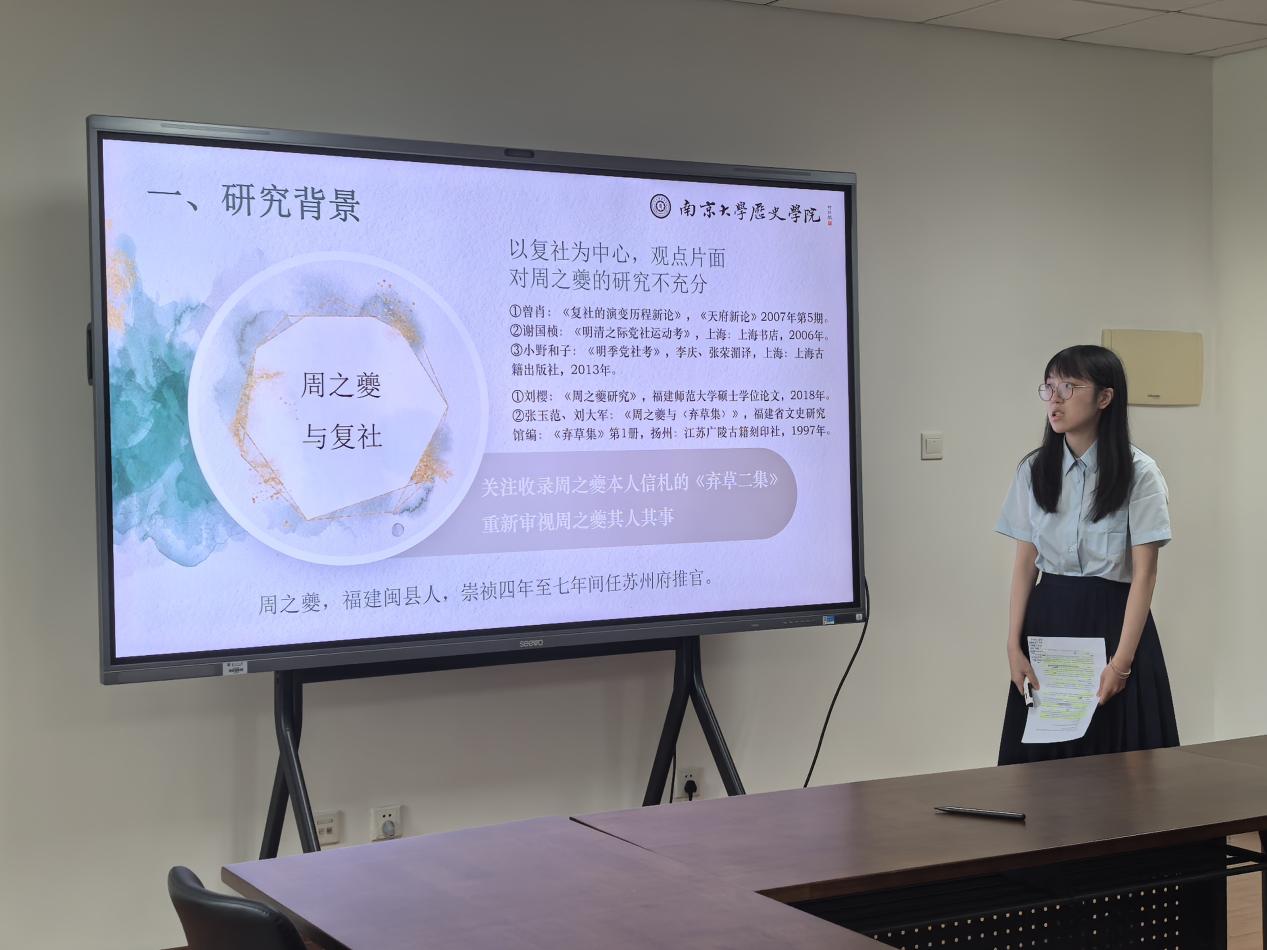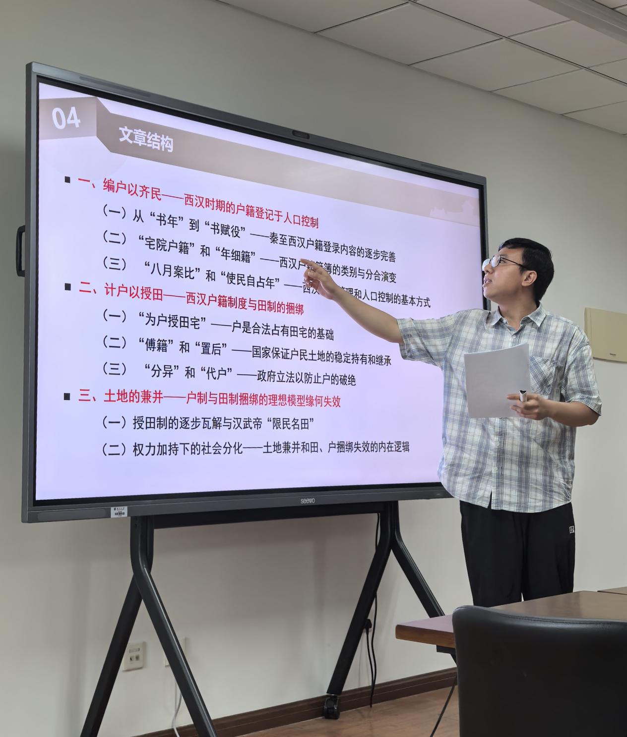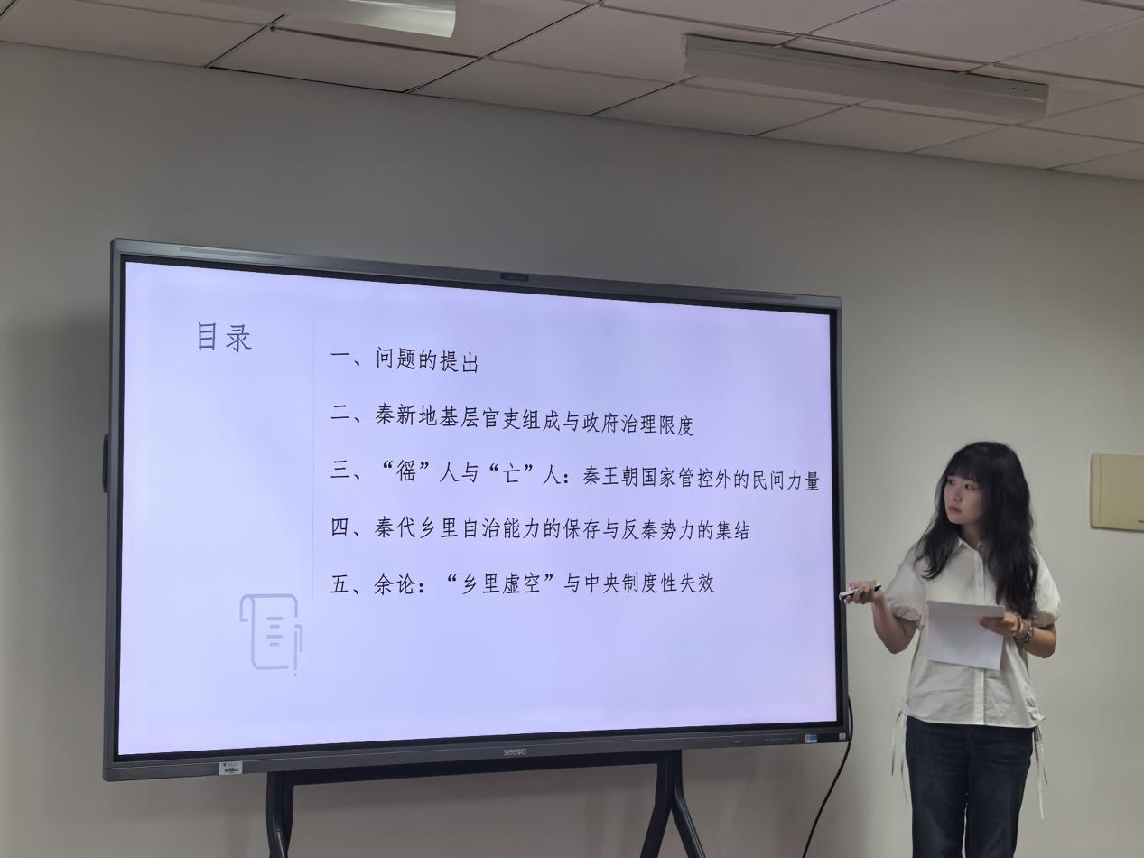 八位学子深耕制度史与社会史。主持兼评议人是东南大学人文学院副教授毕云老师,创研导师为成人电影 胡箫白、武黎嵩、熊永、杨晓春、于磊和张景瑞老师。老师们认可同学们的论文选题导向,提出需要更加关注细节与“门面问题”,如引注格式规范与否、标题问题、摘要和关键词的修改等。