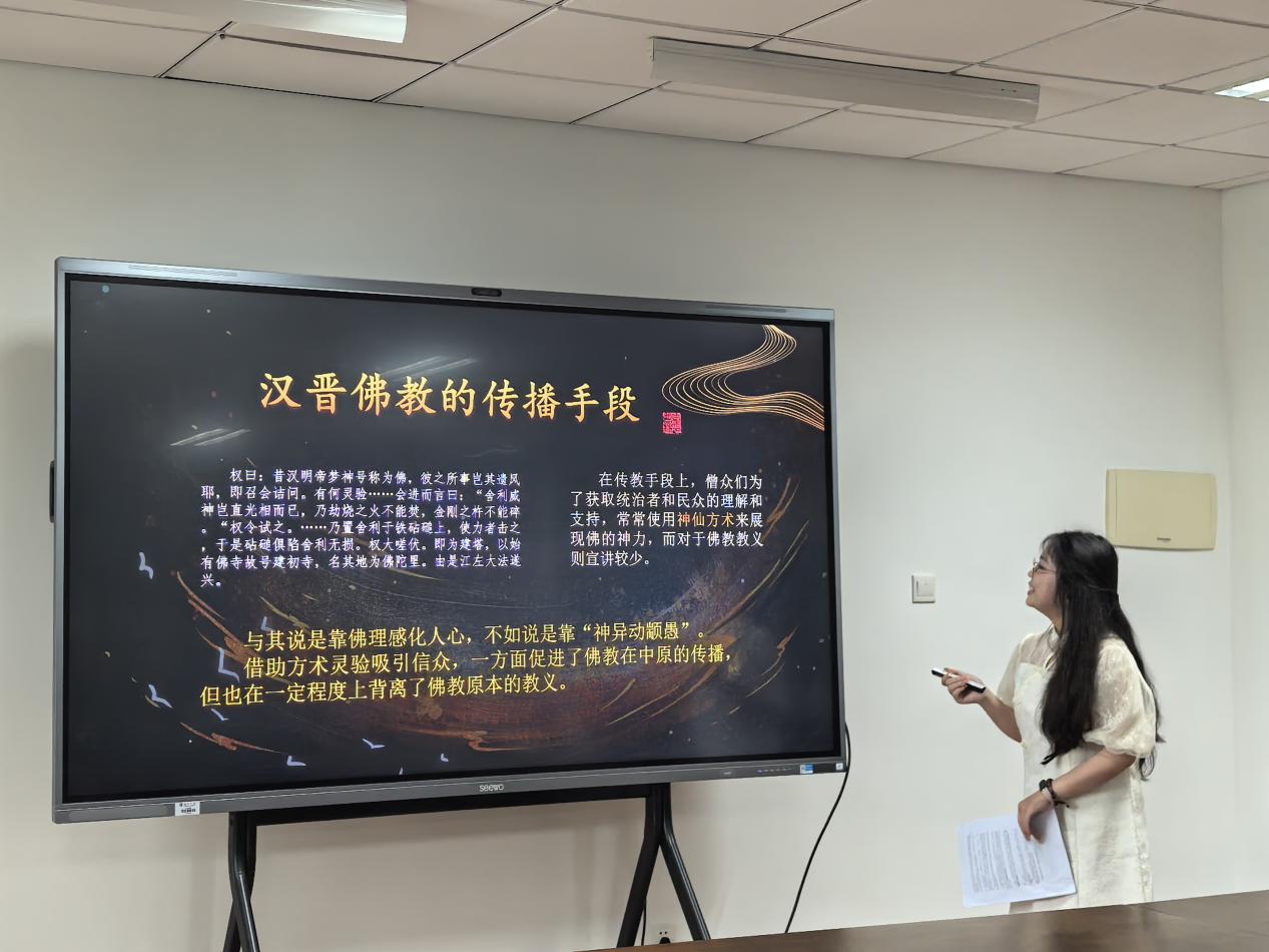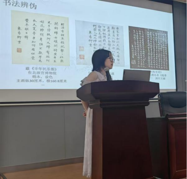 本组聚焦物质文明与文化遗产的多元阐释。主持人兼评议人为南京博物院副研究馆员于成龙老师,创研导师为成人电影 白国柱、车旭东、殷洁和赵星宇老师,共有5位同学参与汇报,研究涵盖牙璋文明基因、红绿彩瓷外销、元代书法鉴藏、汉晋石刻溯源及博物馆文创机制。老师们表扬了同学们的论文视野宏阔、具有问题意识,同时也建议题目可更聚焦,小题精做,持续深挖材料;强化问题意识,避免过度阐释;严守学术规范,确保论证逻辑自洽等。