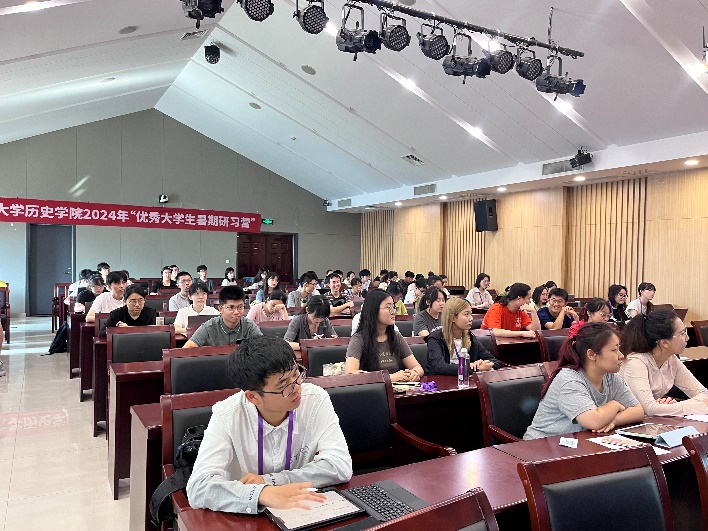 随后7日至8日,学员陆续参与5场主题讲座的学习。刘相平教授以“台湾问题的缘起、发展以及研究的意义”为主题,以例子切入,阐释台湾问题的缘起以及需要关注的方面。舒建中教授聚焦中美关系,从国际关系史的角度切入,展现两国之间的关系演变,分析当前两国关系对世界格局的影响。罗晓翔教授从如何提高科研能力谈起,以个人的学术研究与研究生教学经历为线索,阐释当前历史学研究生应当具备的技能、能力与特质。闵凡祥教授就《医源性灾难:医疗史的B面》展开分享。周学鹰教授从常见的“床”引入介绍建筑考古学,讲述建筑与考古的关系以及建筑考古的重要性。