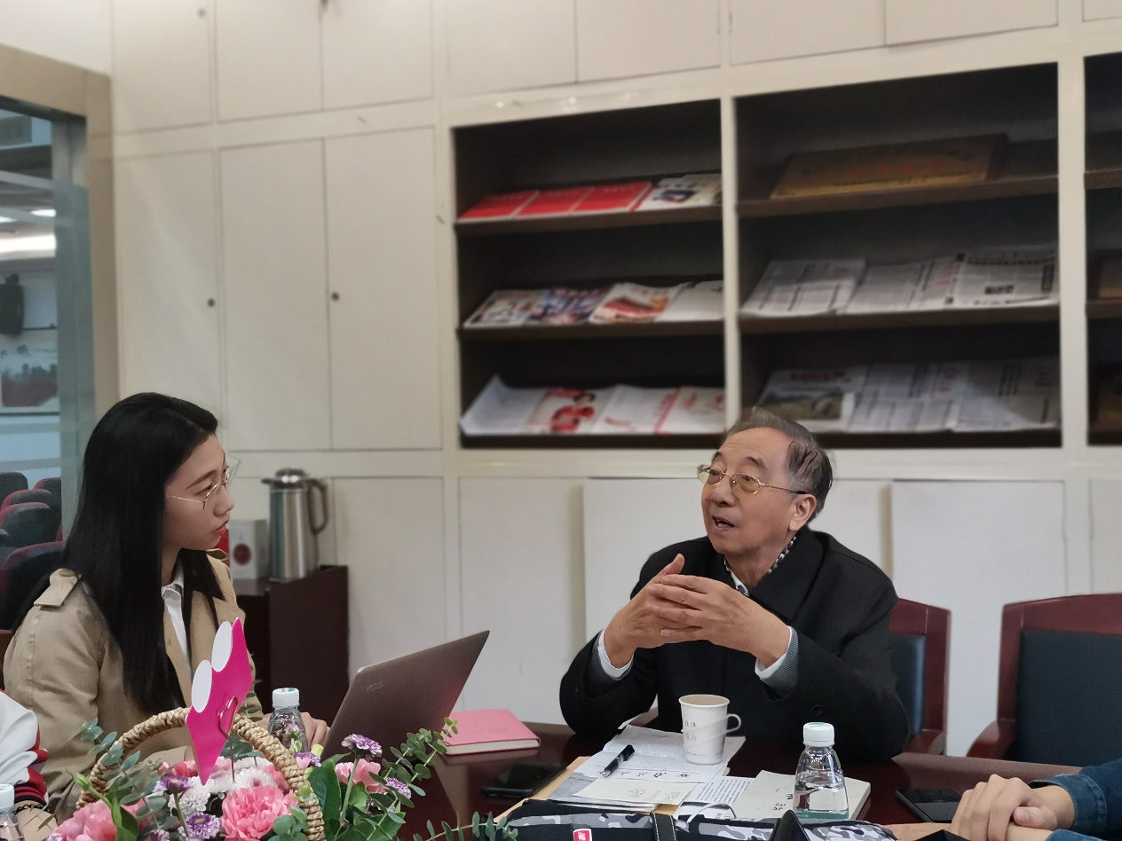 沈老师在成人电影 鼓楼校区的离退休工作处会议室里接待了我们。初见老师,是一位神采奕奕,有条不紊的老先生,其精气神完全不似年近九十的老者。沈老师儒雅随和,长达一个多小时的采访里老师丝毫不见疲惫,反而越发精神,言语铿锵有力,不时询问我们的生活、学习状况和对近期各项国际大事的看法,他乐观、善良的品质使我们倍受教育。
