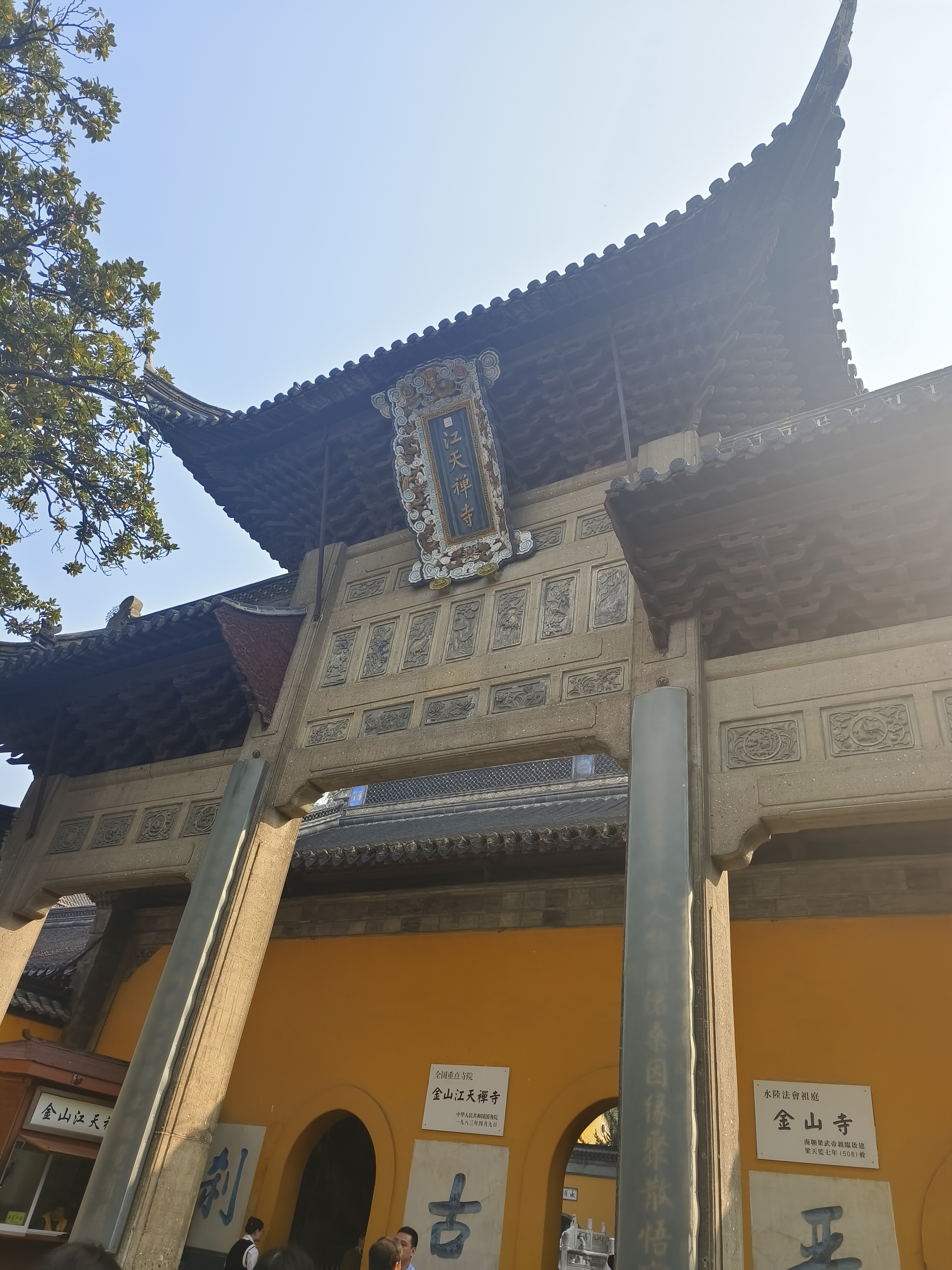 下午14:30,我们乘车来到焦山。其作为镇江“三山”之一,因碑刻而闻名于世。焦山有数块重要的元代碑刻,这也是我们此行的重点。焦山坐落于江心,因而只能乘船抵达。我们从渡口搭乘拥挤的客船,不多时便到焦山脚下。甫一下船,一座石牌坊便映入眼帘,上有“焦山胜境”四字。我们绕过写有“庄严国土”的照壁,穿过幽静的定慧禅寺,踏进碑林博物馆。