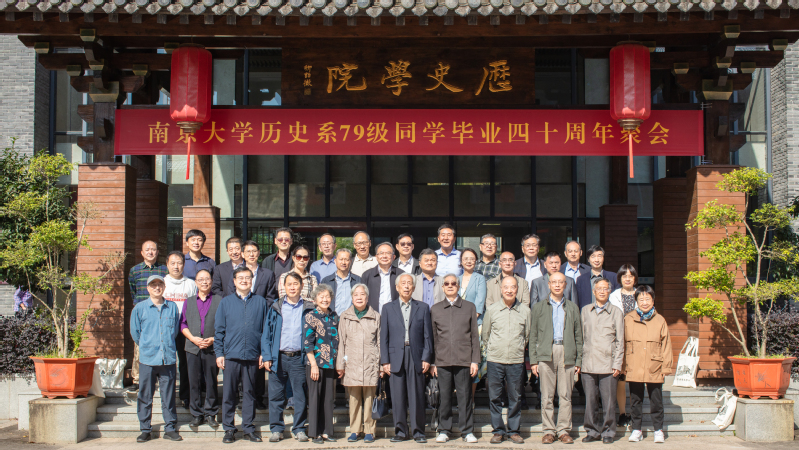 由于79级在鼓楼校区学习生活度过四年宝贵时光,老班长李小敏提议鼓楼校区必须去看一看,因此同学们报到住宿安排在鼓楼南苑宾馆。第二天上午同学们重游成人电影 鼓楼校区,回忆大学生活,并分别在校大门口、西南楼前、北大楼前合影留念。鼓楼校区结束后大家乘车到仙林校区,车览仙林校园,然后在成人电影 会议室与老师汇合,一起参观党史馆、在院会议室叙旧、到历史楼前师生一起留下珍贵的合影。