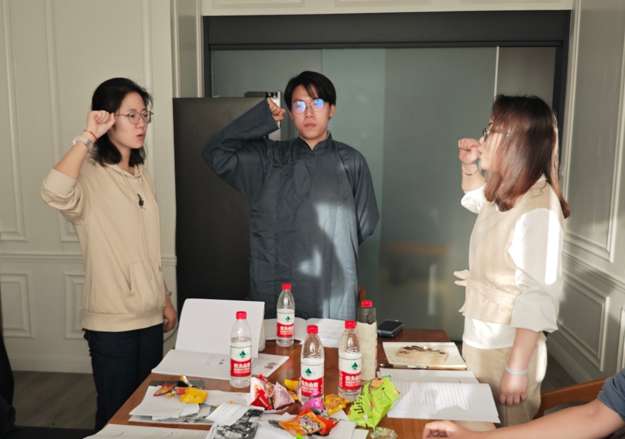 活动结束后,与会者纷纷表示,通过亲身演绎,更能深切地体会那个年代的激荡与觉醒,牢记党的初心使命。党员耿冰城在剧本中扮演了一位爱国进步学生,见证了人物从励志青年到热血军人身份的转变,“我真切感受到那个艰难岁月里有如此多的先辈为国家、为民族奔走辛劳、奉献牺牲,我们文明的长河也因这一代代青年的努力而得以绵延不绝”。“在扮演剧本中的人物(于津颖)跟随李大钊先生宣誓时,我想起来两年前自己宣誓入党时的情景,深受触动,”学生党员涂铭表示,“今后要更加奋发努力,把先辈们用鲜血和生命铸就的传统继承下去。”此外,通过剧本杀这种新颖形式,党员们在活动中增进沟通了解,积极推动了教工党支部与学生党支部融合共建,有利于强化党员意识,实现立德树人、教学相长的根本任务。