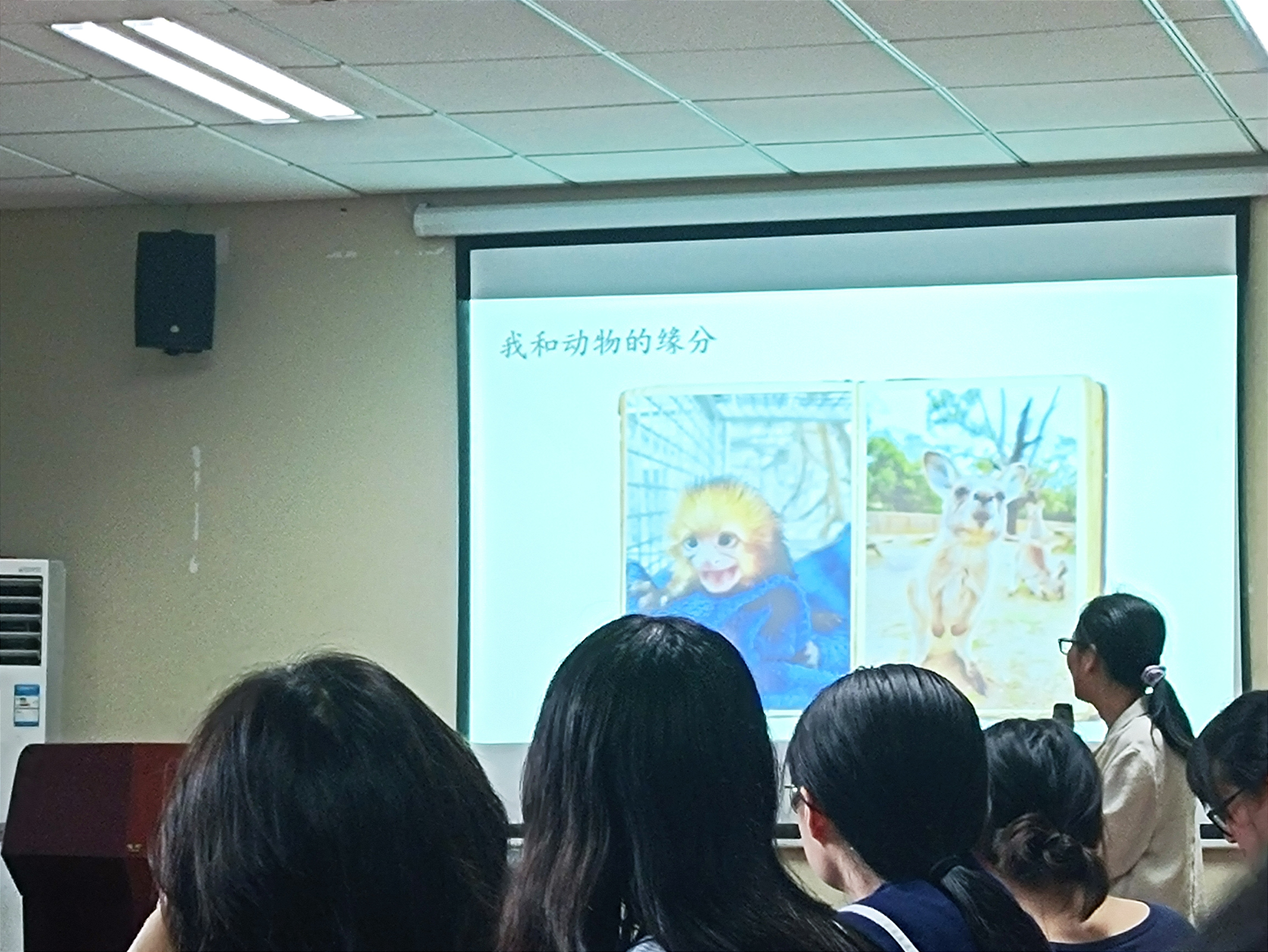 老师讲述了自己花费三年时间进行职业探索的经历。在这期间,她体验了理财顾问、环境规划师、动物饲养员、学而思老师、中学生物老师等工作。刘春红老师首先介绍了自己在做动物饲养员时与动物的缘分,与我们分享了许多动物的萌照,也讲述了萌照背后的艰辛与危险。8个月后,老师最终放弃了动物饲养员的工作,走进了教师行业。