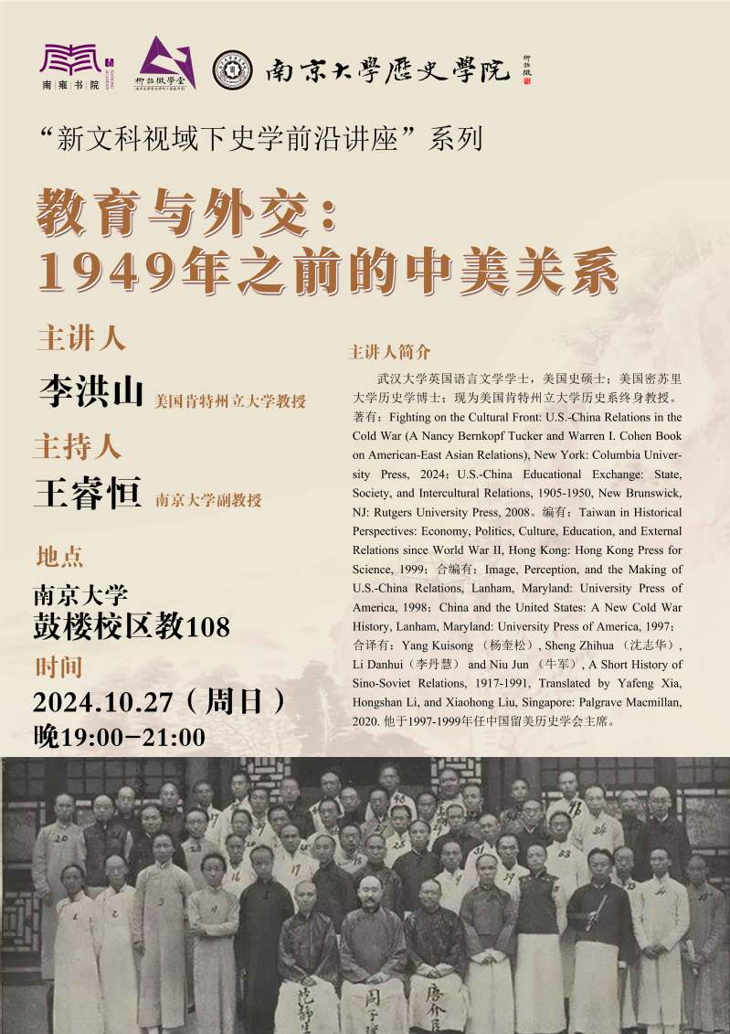 讲座预告丨教育与外交:1949年之前的中美关系