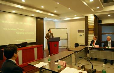 洪邮生教授发表演讲 洪邮生教授从国际关系的角度提出这样的问题:怎样去定义欧盟的力量?欧盟会怎样使用这种力量?从欧盟与外部世界的关系来看,这是难以把握的。希望《里斯本条约》的生效,能够给欧盟的发展带来新的希望,使其充当一个和平的角色在国际上发挥应有的影响力。