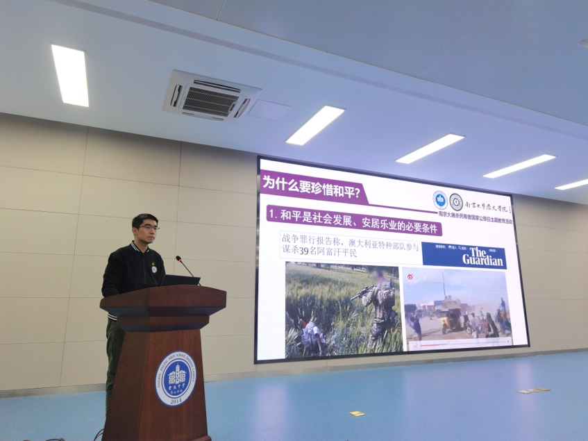 In the second part of the activity, cherishing peace, Gao Yulai first explained the definition of "peace" in the world today. He used cases of terrorism and existing war crimes in other countries and cited modern China’s humiliation history as evidence for the importance of staying away from war and the need to cherish peace.