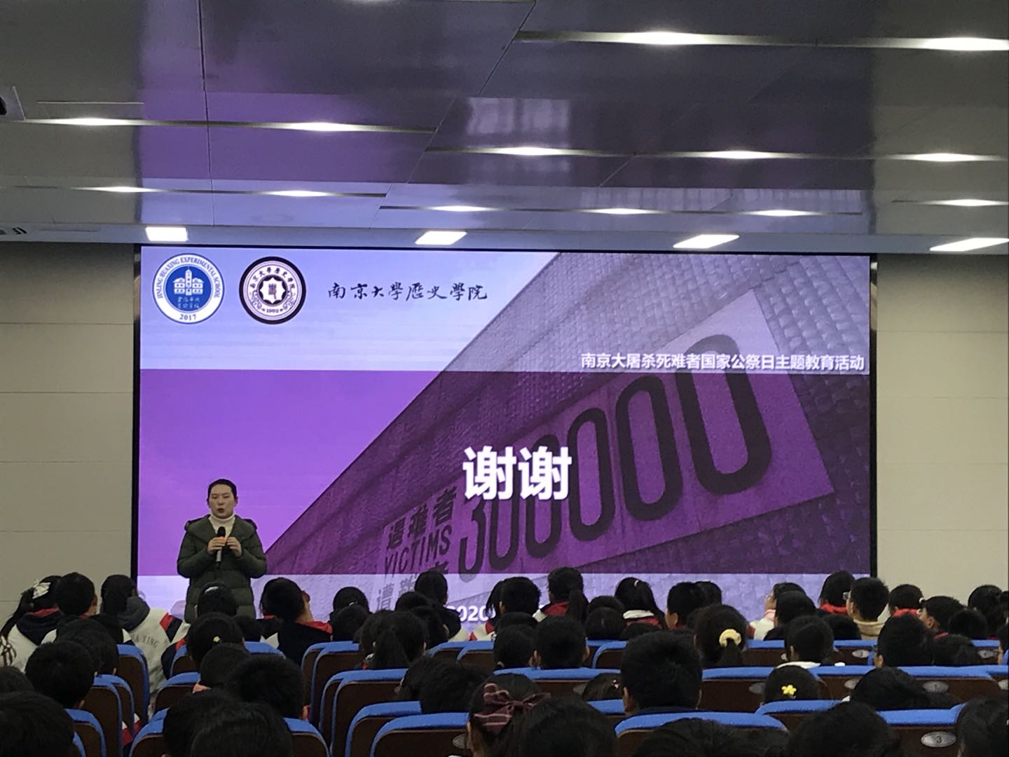 Before the event started, Xu Muyu, director of the office of student affairs of the East Campus of Jinling Huaxing Experimental School, introduced members of the Party branch from NJU and emphasized the significance of the theme education activity for the National Memorial Day.