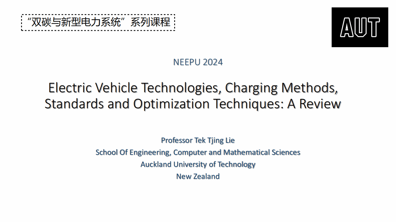 Tek Tjing Lie教授以“Electric Vehicle Technologies, Charging Methods, Standards and Optimization Techniques: A Review”为题,带领同学们了解了电动汽车的充电方法,如BSS、WPT、CC,以及电动汽车充电标准和优化技术等,并全面介绍了当前全球能源转型趋势下,电动汽车相关技术的发展现状以及前景。