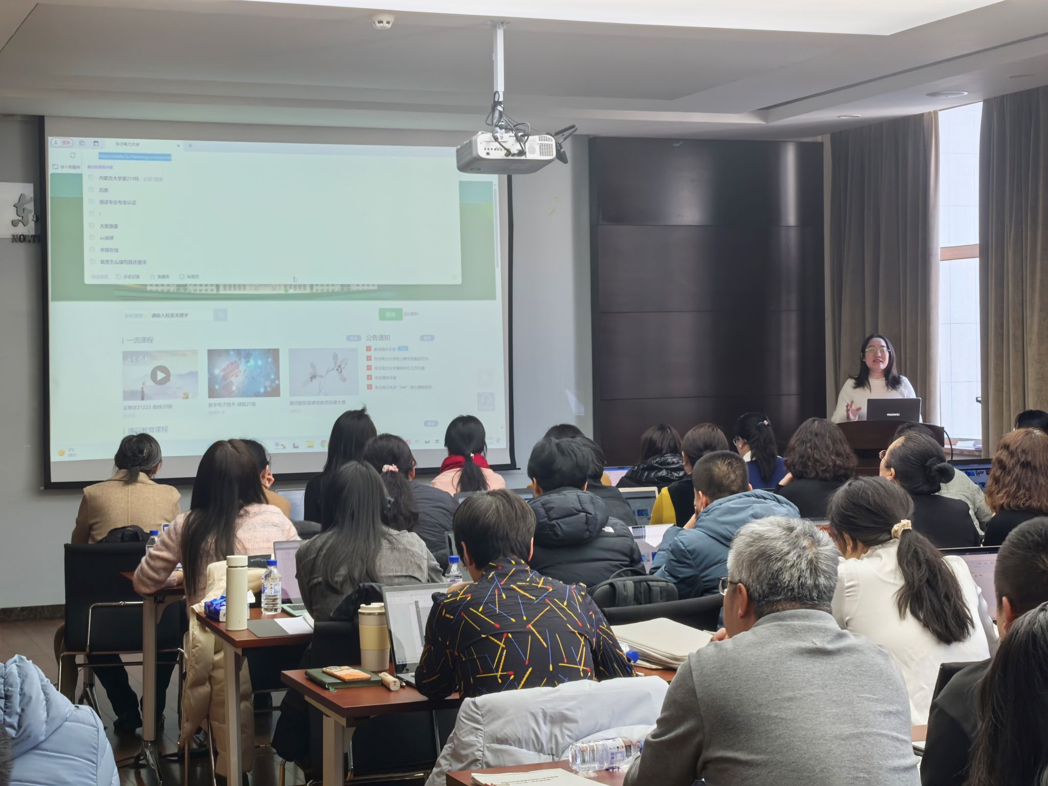 教师共60余人参加了会议,会议由教学质量监控与评价中心杜文军科长主持。杜科长希望本次报告会能够有助于广大教师拓宽创新视野,提高对AI赋能教学的认识,提升AI技术应用能力,并鼓励大家拥抱AI、积极尝试、逐步践行,利用数智化教学技术切实提升教育教学质量。