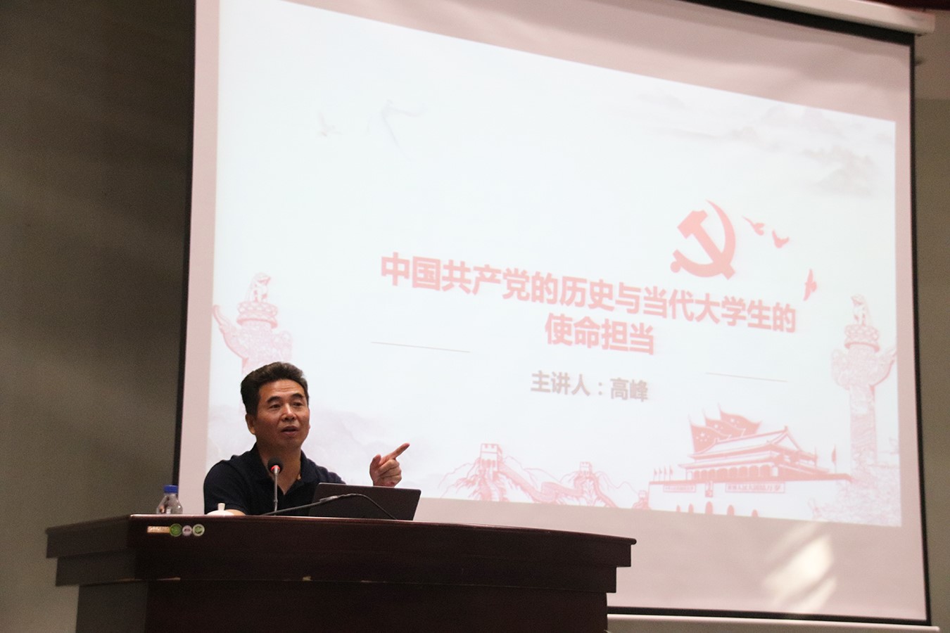 开班仪式结束后,培训第一讲正式开始。高峰为大家作《光辉的历程:中国共产党的历史与当代大学生的使命担当》专题讲座。他结合自身学习经历,重点围绕中国共产党的成立、五大历史性成就、四次挫折和基本经验为学员们讲授党的发展历史,使全体学员对中国共产党的了解和认识更加深刻。青年兴则国家兴,青年强则国家强。他引用习总书记的话强调,广大学员要爱国,忠于祖国和人民;要励志,做奋斗者;要求真,求真学问,练真本领;要力行,知行合一,做实干家,在实现中国梦的生动实践中放飞青春梦想,在为人民利益的不懈奋斗中书写人生华章!