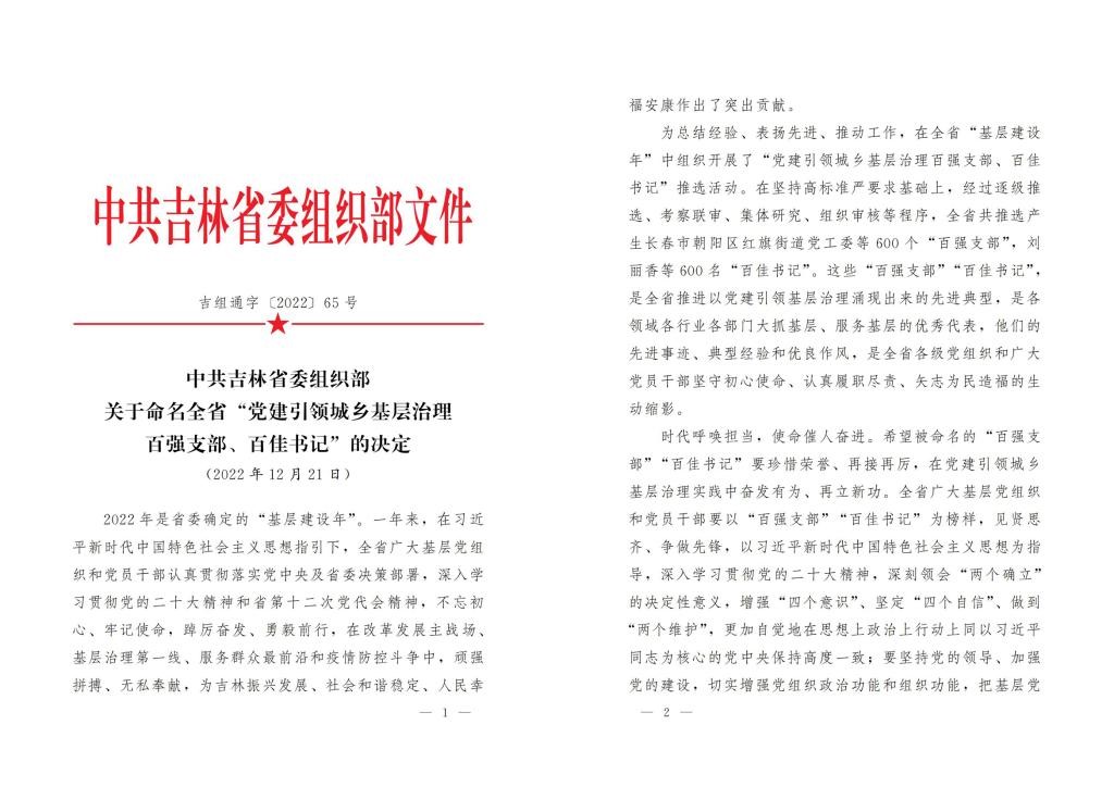 近日,中共吉林省委组织部正式印发了《关于命名全省“党建引领城乡基层治理百强支部、百佳书记”的决定》,我校成人电影