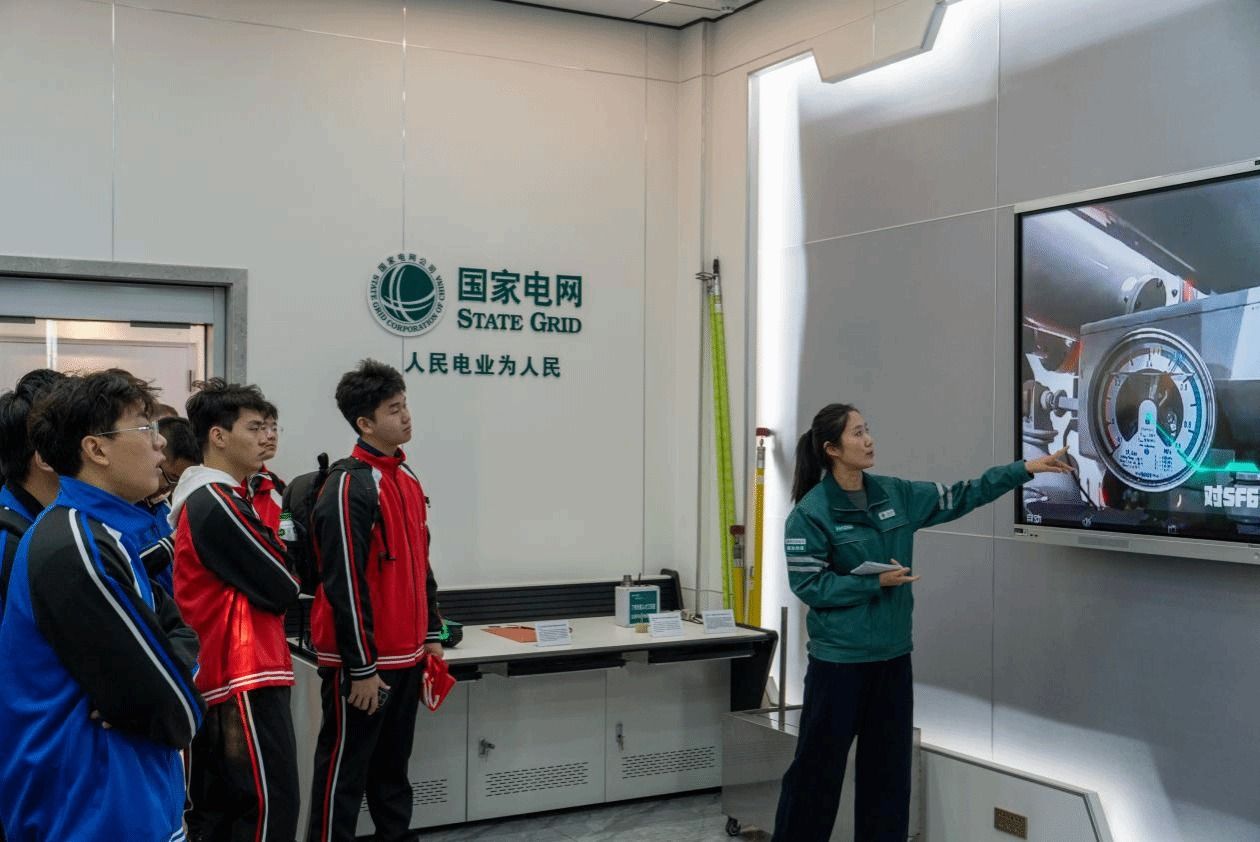 师生代表首先走进哈达湾220kV变电站,深入体验电力生产一线实际运行情况,参观同学与工作人员现场取经学习,倾听他们的职业发展经历。随后,师生们来到国网吉林市公司丁伟专家人才工作室,共同学习国网工匠和技术能手利用智能化、信息化设备破解传统运维难题的创新案例。在供电服务指挥中心,工作人员详细介绍了指挥中心工作内容和近些年取得的主要成果业绩,让同学们对调度工作有了更加全面的认知。