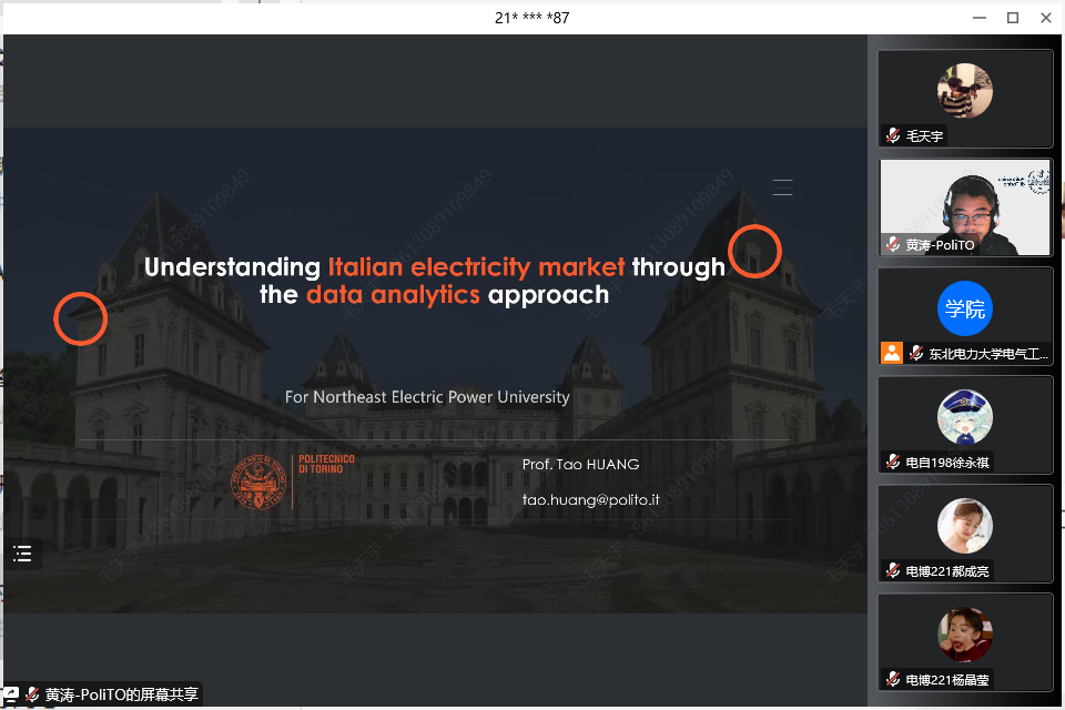 邀请意大利都灵理工大学黄涛教授通过腾讯会议方式作了题为《透过数据分析深入理解意大利电力市场》的线上学术报告,并在腾讯会议直播平台进行了直播。本次学术报告由姜涛教授主持,成人电影