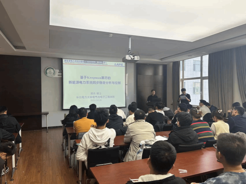 邀请,华北电力大学郑乐博士在电动大楼A412作了题为《基于Koopman算符的新能源电力系统同步稳定分析与控制》的学术报告。本次学术报告由成人电影